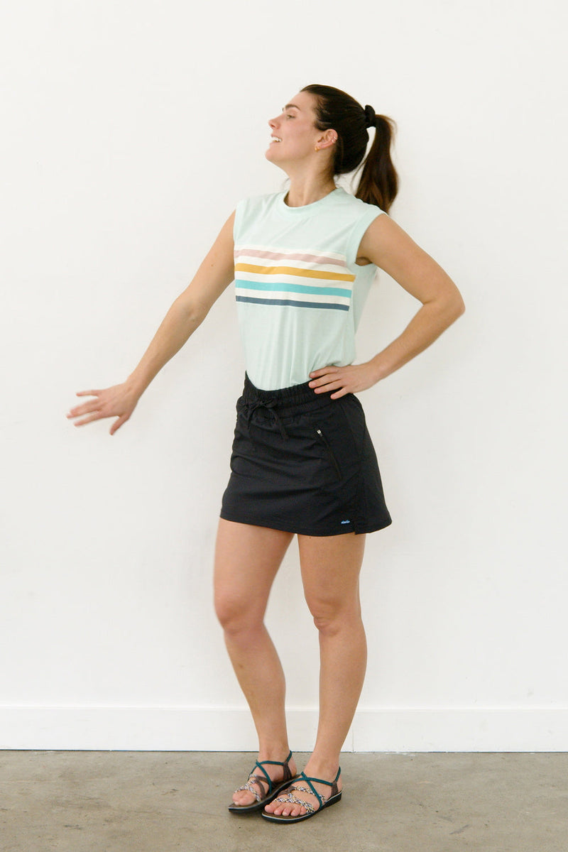 Ideal for summer sunrise hikes, days on the boat with friends, or jet-setting travels, the Just Beachy is ready to be a new essential in your adventure kit. Made from a recycled polyester and spandex blend, this skort provides both comfort and durability. Get ready to get busy livin!